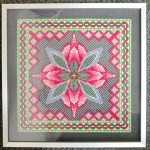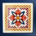 In 2013, several NJNA members decided to do the ANG 2013 Stitch of the Month (SOTM) project as a group on the first Saturday of each month at a member’s house. We knew the name of the project, that is was designed by Debbie Stiehler, what size canvas, what threads, and that there were 3 color families – main with 5 color values, second with 4 color values, and an accent color with 3 values. We had no idea what the final project would look like, which is what we found to be the most fun. Instructions were posted the first of each month and we eagerly copied it down that day anticipating our Saturday stitching.