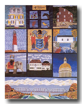 This large member-designed needlepoint “quilt” depicts points of interest in New Jersey. The quilt is on permanent display at the Bernards Township Library in Basking Ridge, New Jersey which just happens to be our meeting location. If you attend a NJNA meeting, one of our members will be happy to tell you all about the quilt and the stitchers!