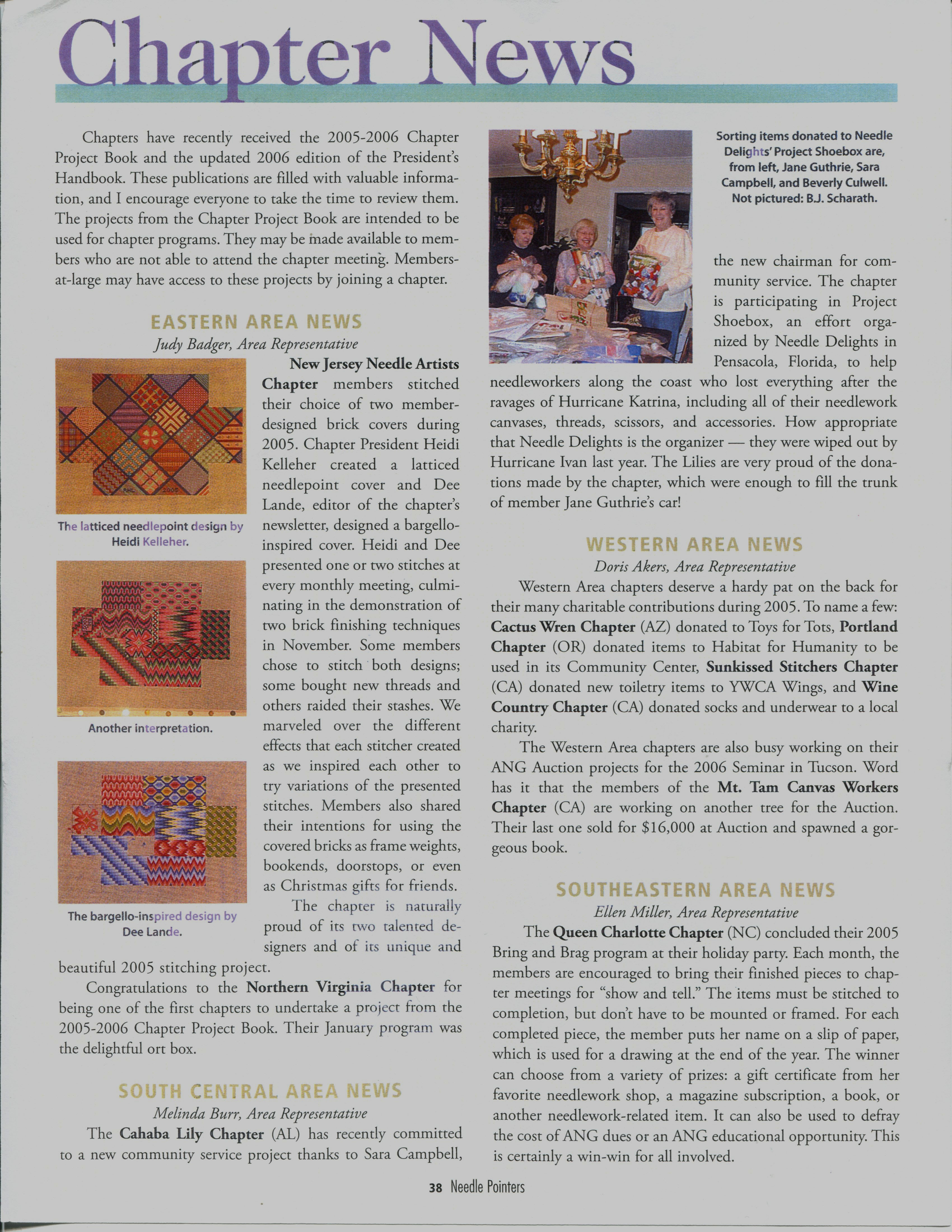 The chapter is naturally proud of its two talented designers and of its unique and beautiful 2005 stitching project.