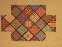 New Jersey Needle Artists Chapter members stitched their choice of two member-designed brick covers during 2005. Heidi Kelleher (Chapter President) created a latticed, needlepointed cover and Dee Lande (Editor of the chapter’s newsletter) designed a Bargello-inspired cover. Each presented one or two stitches at every monthly meeting, culminating in the demonstration of two brick finishing techniques in November.