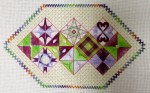 Stitchers were encouraged to make their own color choice as well as play with the layout. The ANG website provides photos of finished work for inspiration. Our chapter also taught a number of these stitches throughout the year to add to our stitch notebook.