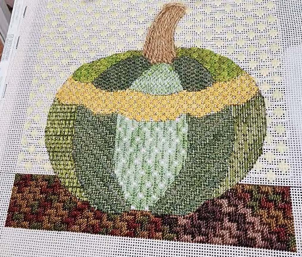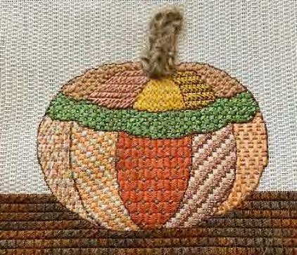 Jeanne’s Pumpkin was a fundraiser project for the Queen Charlotte ANG chapter and several members enjoyed stitching it in 2024.